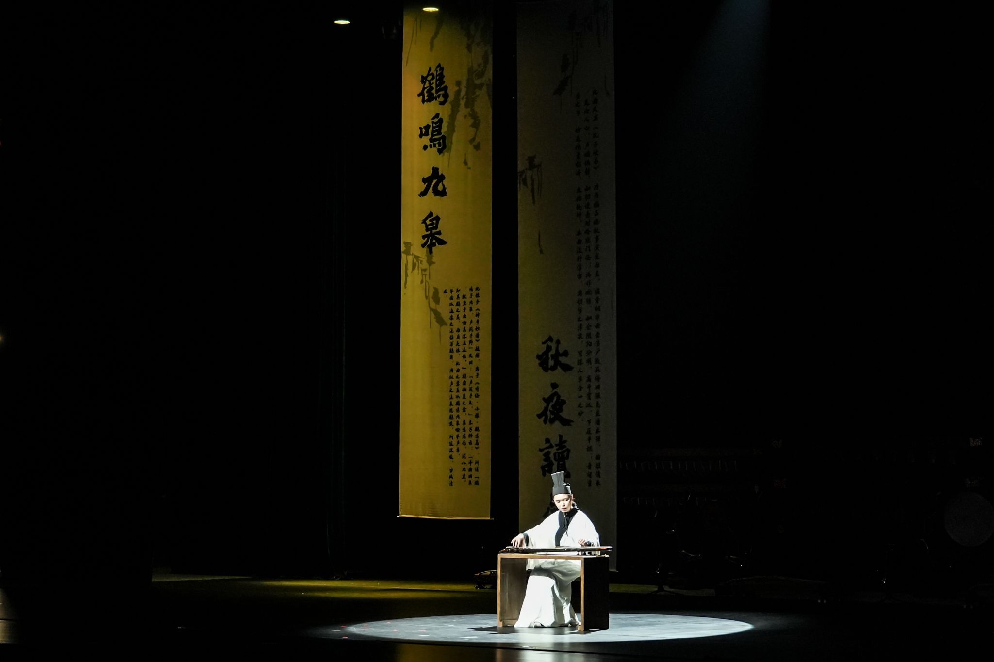 在首演中,北师港浸大玉振金声雅乐团运用编钟、编磬、句鑃、瑟、建鼓等中国古代乐器,融合礼仪、乐舞带来了14个节目,既有庄严肃穆的仪式音乐,又有轻歌曼舞的宴享之景,以及绵延悠长的情歌和弦,带领观众穿越千年流光,感受金石丝竹之音和天仙窈窕之姿。